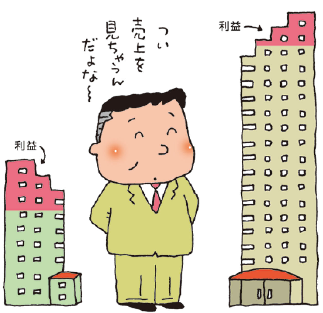 例えば売上10億円で利益1000万円の仕事と、売上1億円で利益2000万円の仕事があった場合、普通に考えれば後者の方がいい案件だ。しかし、経営者は売上しか見ていないので、売上億円の仕事を選んでしまう。とりあえず受注して売上を確保すれば、前渡し金を受け取ってお金が回っていく。しかし、その繰り返しで自転車操業に陥ることになる。