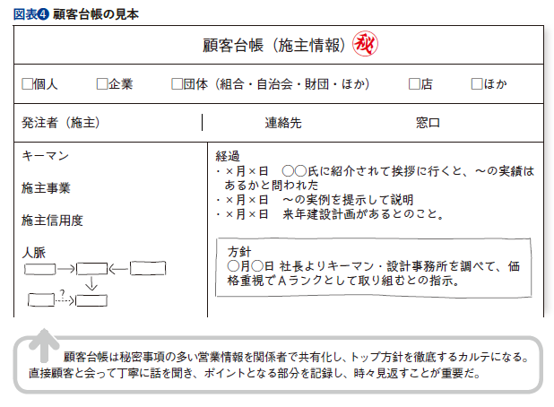 建築の場合も同じように応用できる。例えば、顧客台帳を見返して「あの工場、建築してだいぶ経つな」と思って見に行ったら舗装が荒れていた。そこで顧客に「再舗装する必要があると思いますが、もし要望があったらぜひ検討してください」と売り込む。そこから受注につながるケースも多い。