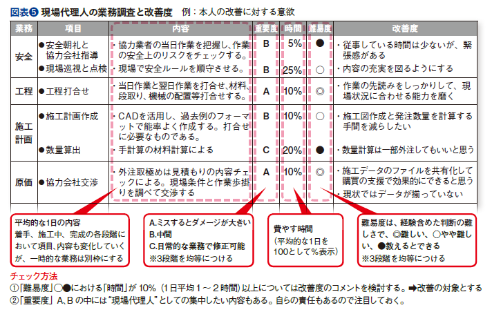 ただし、それを元に自社の施工手順に合わせることが重要だ。なぜなら他社の例をまねるだけでは実際に工事に従事する人が自分ごととして認識しづらくなるからだ。