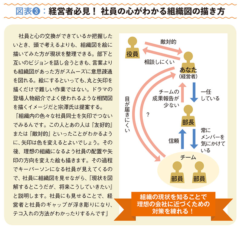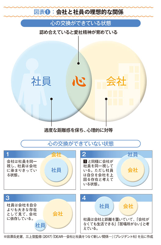 心理学の博士号を持つ、株式会社Assatte代表の宗澤岳史氏は、経営者が社員の「心」をいかに満たすかが愛社精神を育む上でキーになると解説する。「雇用に問題を抱えている会社は、社員の心をぞんざいに扱い、信頼関係を築けていないケースが多々見受けられます。報酬と労働力の交換だけで成り立っている関係だと、社員は給与が下がった場合、仕事へのモチベーションが激減します。さらに、いま勤めている会社より給与が高い会社に転職してしまいかねません。もちろん物質的なサポートは必要ですが、会社サイドが普段からいかに社員を精神面で支えられているかが、社員を会社に留めさせる決め手となるのです」