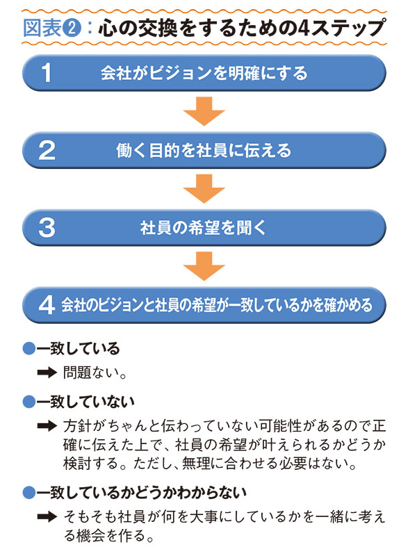 社員は生身の人間であり、その行動動機には、給与以外に、やりがい、責任、向上心、地位といった目に見えない「心」に関わる要素が潜む。社員が会社の方針に共感し、働き甲斐を感じていれば、「心」が満たされている状態といえる。当然、そうした社員が離職する可能性は低い。