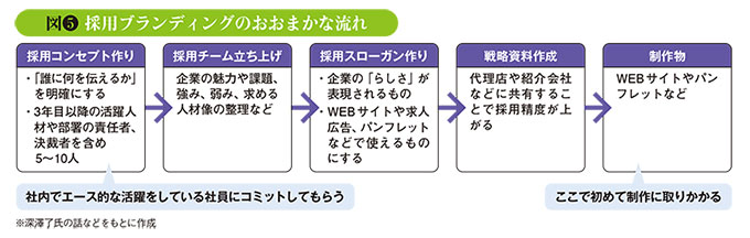 制作物について、深澤氏は「パンフレットにはとくに力を入れるのがいい」という。最近は採用案内でも会社案内でもパンフレットを作る企業が減っている。作っても印刷せずにウェブでのみ閲覧できるというものも多いようだ。だからこそ、印刷したパンフレットは求職者の印象にも残りやすいのだ。