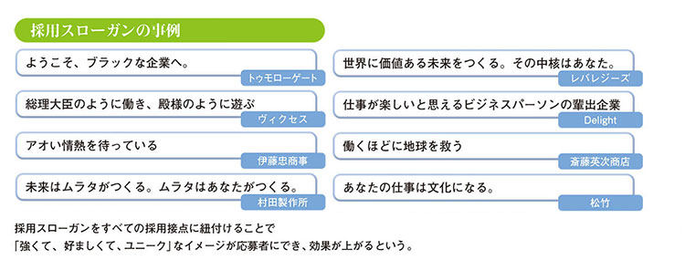 コンセプトが明確になり、それがスローガンにしっかりと反映されていれば、逆にそれに共感してくれた人のほうから集まってくることも考えられる。求人広告などの“無駄打ち”も減って、コスト削減にもつながるわけだ。