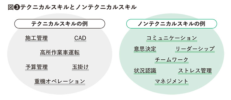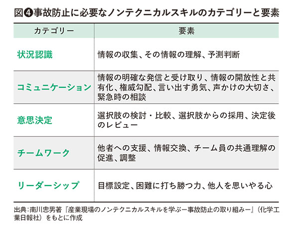 とくに航空業界には「クルーリソースマネジメント(CRM)」という訓練方法がある。コックピットで得られる利用可能なすべてのリソースを安全な運航のために有効活用しようという考えに基づいたものだ。1970年代にアメリカのNASAがパイロットを対象におこなった調査によると、航空事故の原因は技術的なスキル不足よりも、リーダーシップやコミュニケーション、マネジメントなど、まさにノンテクニカルスキルの不足が大きいことがわかった。またテクノロジーの向上や運航環境の整備などによって航空事故は減少したものの、人命を失う事故が完全になくなることがなかったことなどがCRMの概念が生まれた背景にある。日本の航空業界においても2000年以降は、CRM訓練の定期的な実施が義務化されている。