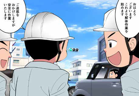 「比較的交通量の多い道路に面した解体工事現場でのことです。作業前に作業員5~6名が道路に向かって並んで、行き交う人々に『おはようございます。これより解体作業を始めます。ご迷惑をおかけしますが安全に作業いたします』とあいさつをしたのです。するとその現場は、なんとクレームゼロを記録しました」
