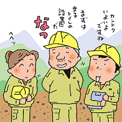 職場環境の面で忘れてはならないのはトイレです。男女兼用は論外で、更衣室やパウダールームも備えた女性トイレを設置することが絶対条件です。女性の活用を後押ししている政府は、そうした設備づくりに補助金を出すなど、現場事務所が女性の働きやすい環境になるよう助成をしています。女性技術者の登用を打ち出してエントリーした場合、優先的に仕事を発注するということもモデル的にやり始めています。意欲と能力のある女性を積極的に現場へ。そういう時代になりました。
