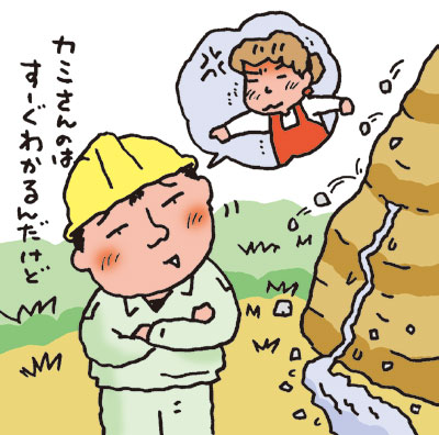 同じように工事現場でも、普段と違う作業や現象を目撃すれば、それがトラブルの前兆ということになります。これらはカメラからのモニター画像では気づきにくいことがあります。例えば、地山掘削の現場で、クラックが入ったり、湧水や浮石が発生したりすれば、それは土砂崩れの予兆です。それを観察して普段との違いに気づき、事前にネットを張ったり、作業者に注意を促したりすることが大きなトラブルを防ぐのです。